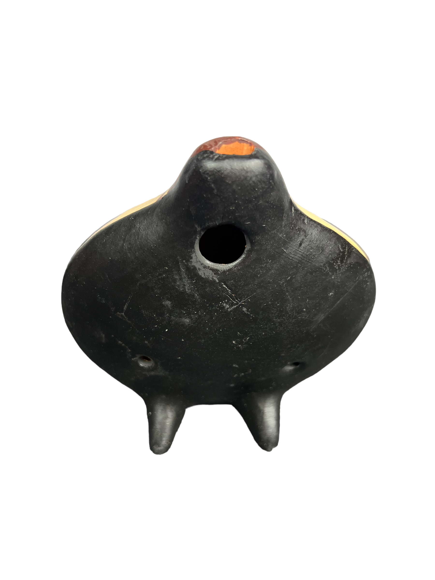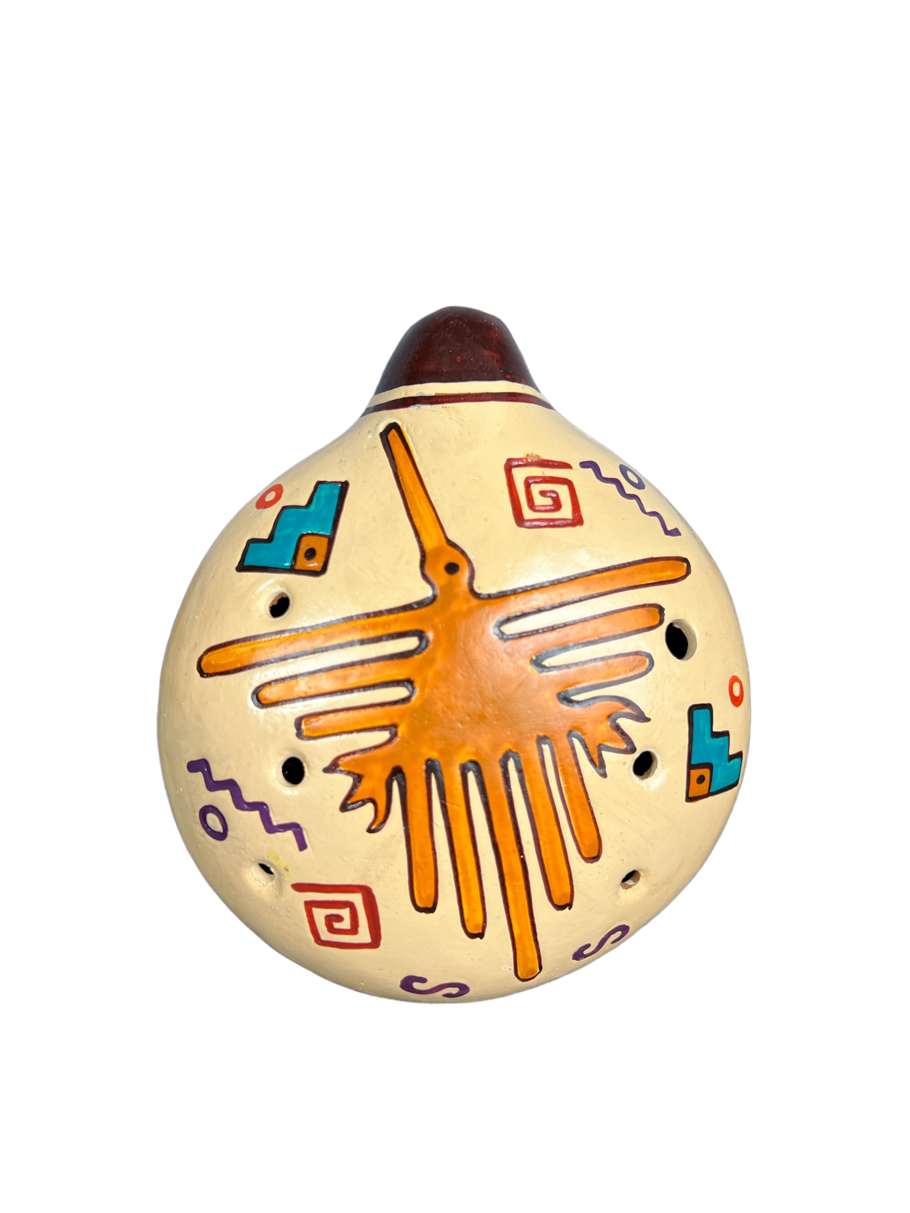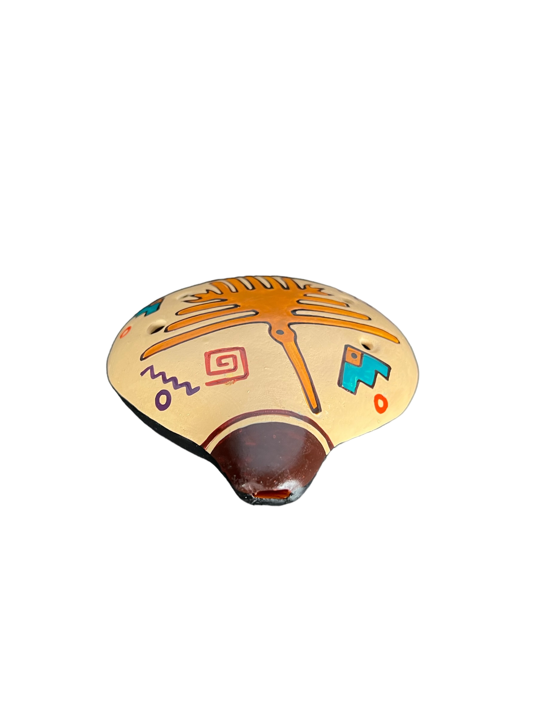 Wind musical instrument, made of clay, small, oval and slightly elongated, with eight holes, 11 notes (two below and six above) is played like the flute.