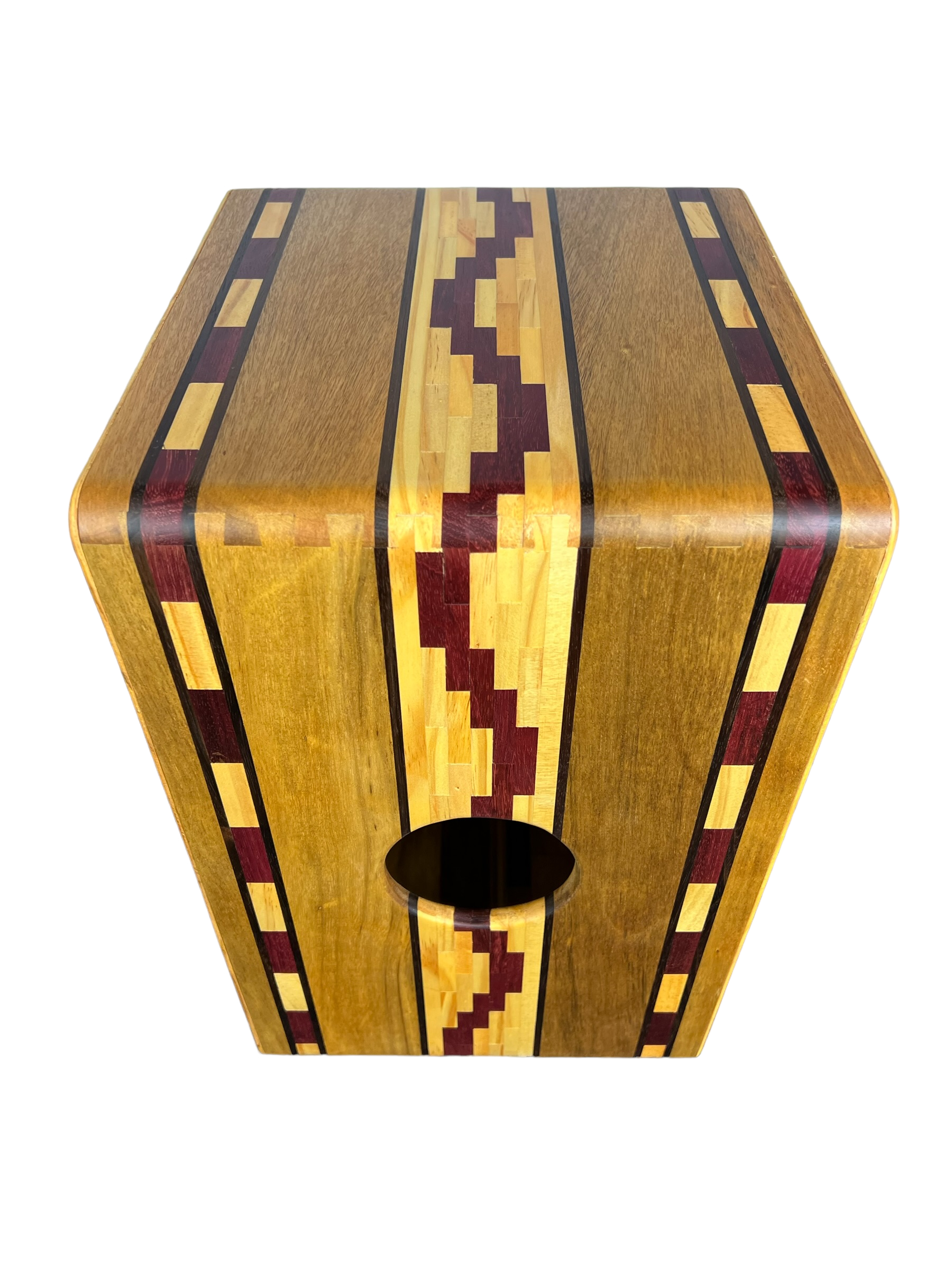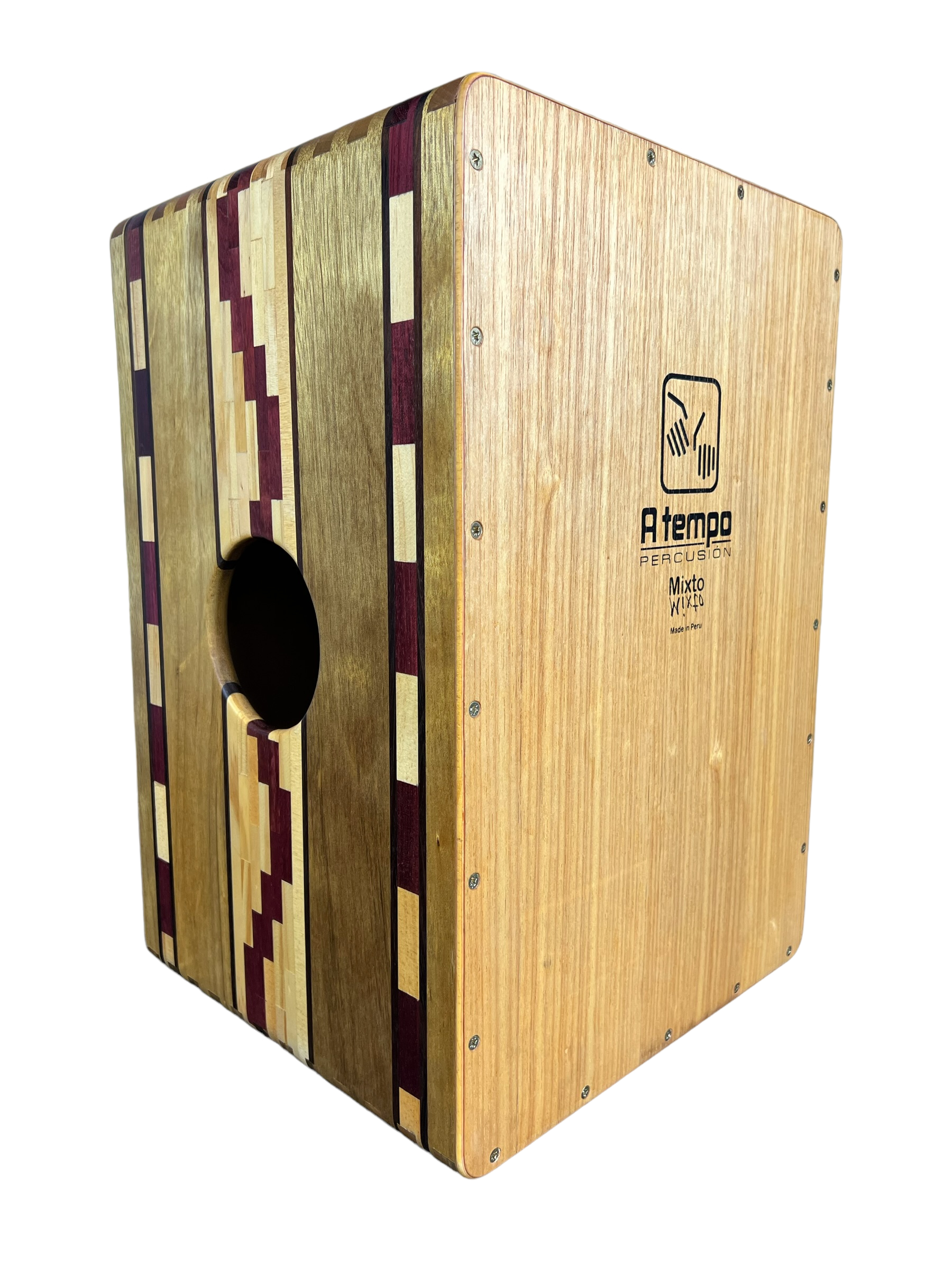 Le CAJON MIXTE VIOLETA est un cajon à deux surfaces qui combine le Cajon Classique et le Cajon avec cordes.